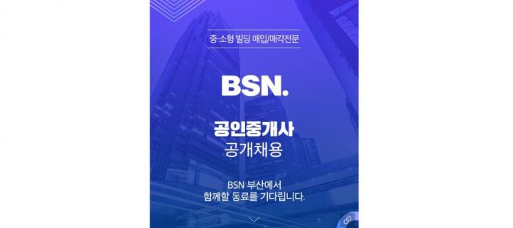 BSN빌사남 부산) 공인중개사 채용 공고_주5일 벡스코역 도보 5분!
